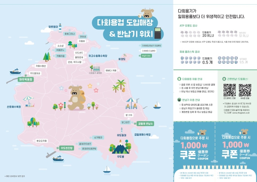 우도에서 할인을 받을 수 있는 다회용컵 판매 매장 위치도 (사진, 제주자치도)