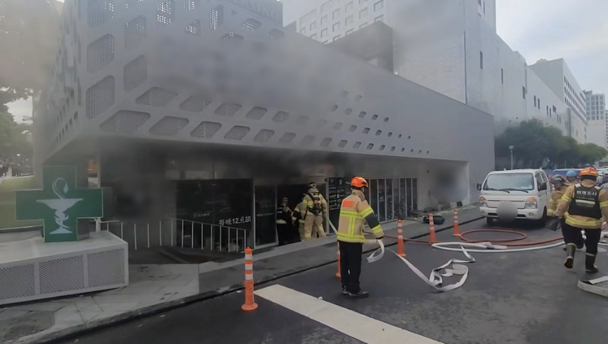 오늘(28일) 아침 제주시 연동의 한 대형호텔 별관 약국 건물에서 불이 났다. (제주소방안전본부 제공)