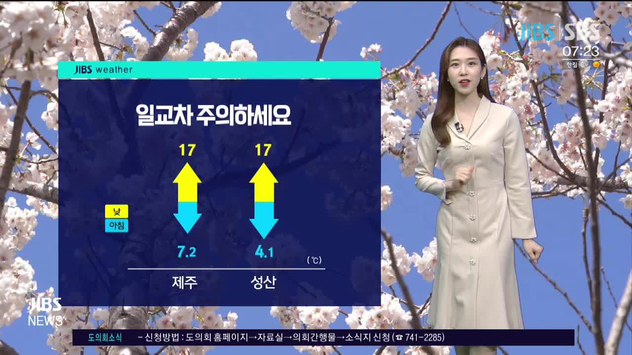 제주지방기상청은 오늘(15)부터 점차 날씨가 풀리면서 점차 평년 기온을 회복할 것으로 전망했습니다.