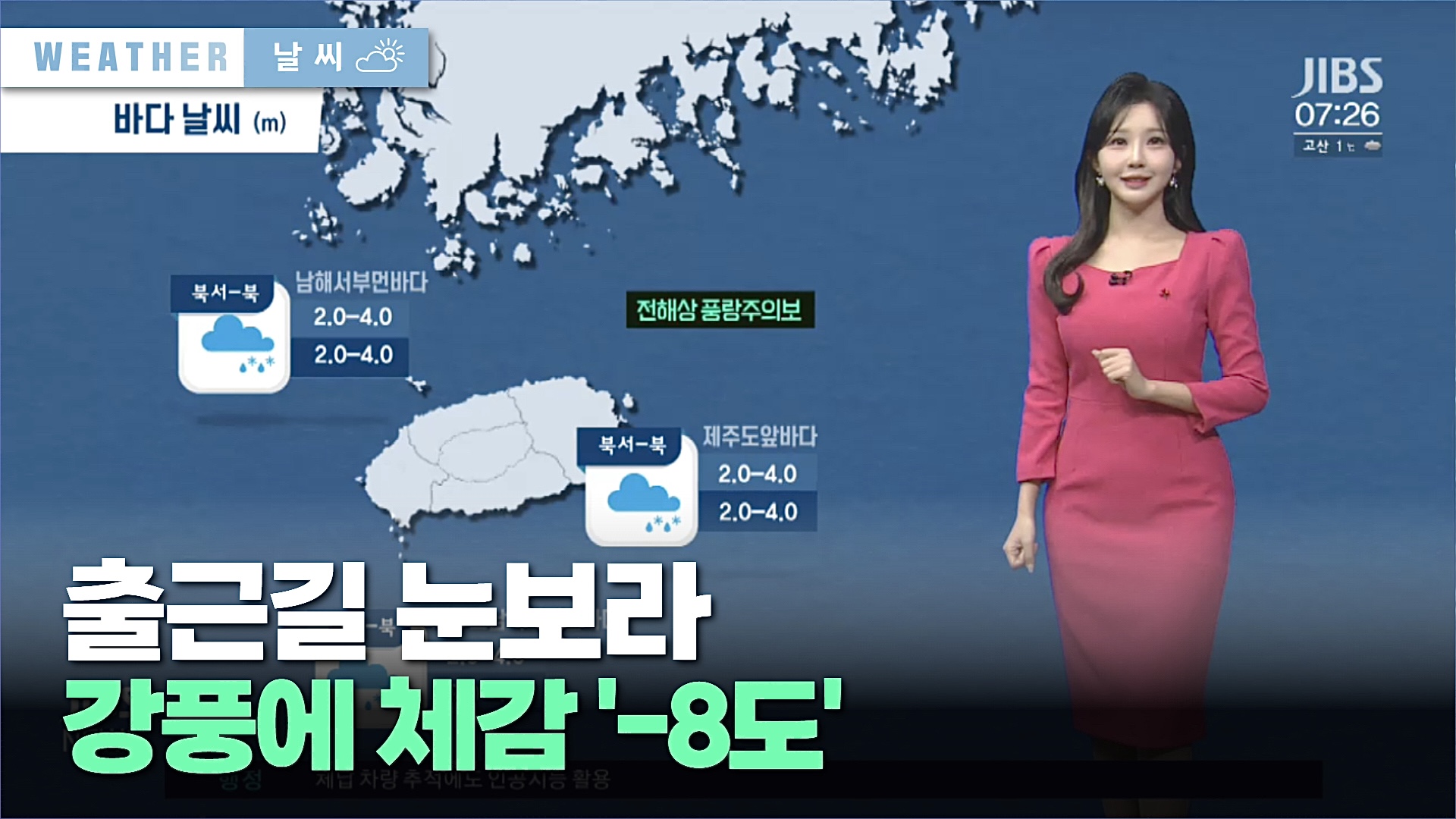 [제주날씨] 출근길 눈보라…강풍에 체감 '-8도'
