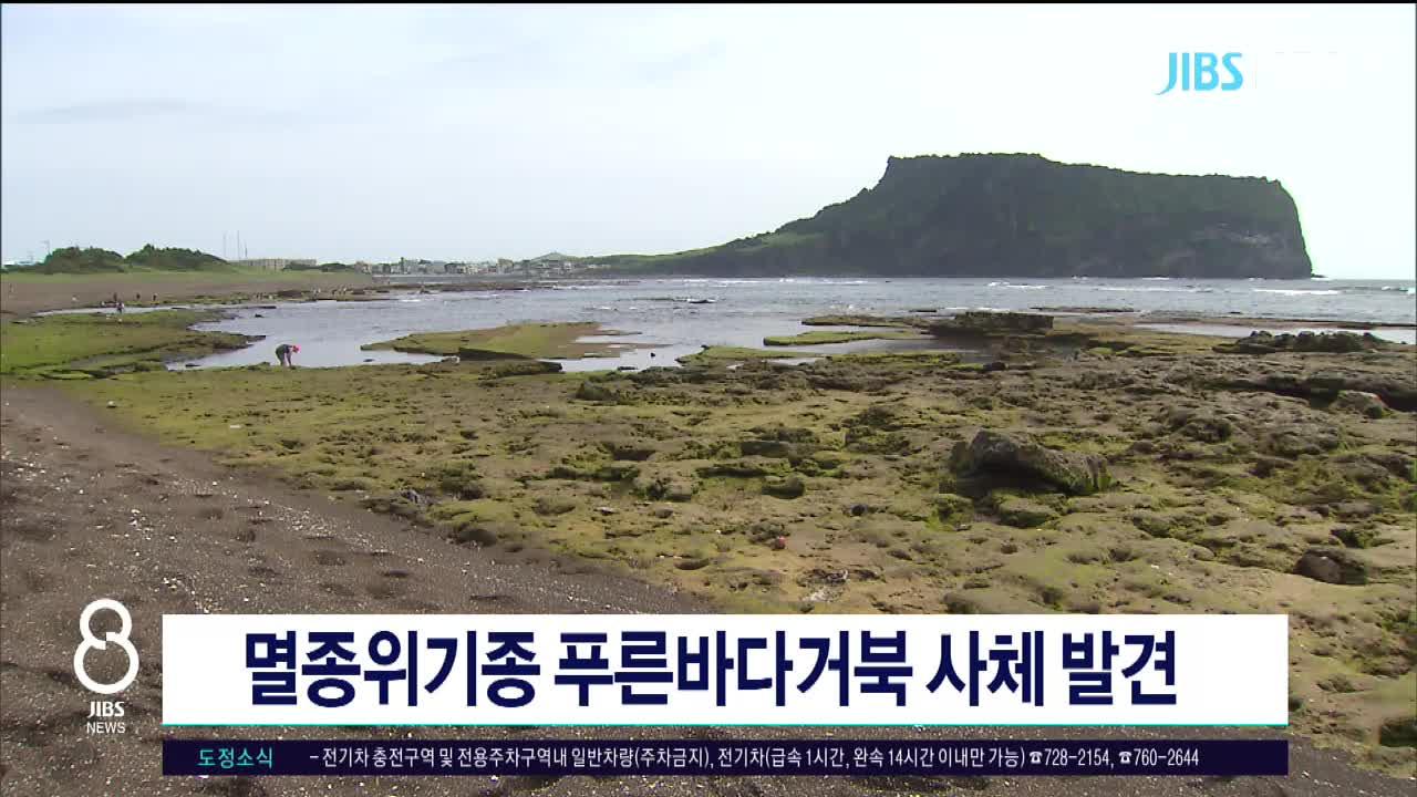 제주 해변에서 멸종위기종인 푸른바다거북이 부패가 심하게 진행된 사체로 발견됐습니다.