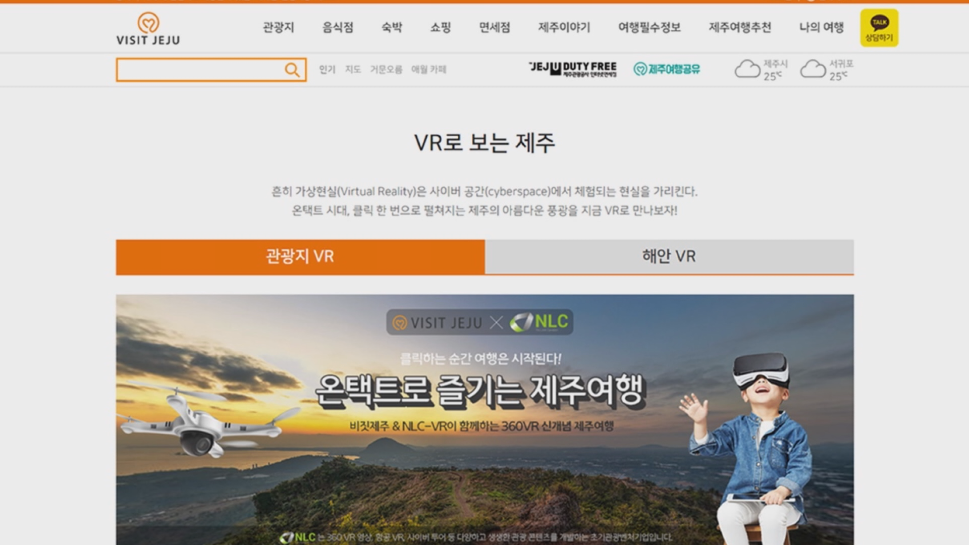 온라인에서 제주 관광명소들을 즐길수 있는 가상현실 VR 콘텐츠가 공개됩니다.