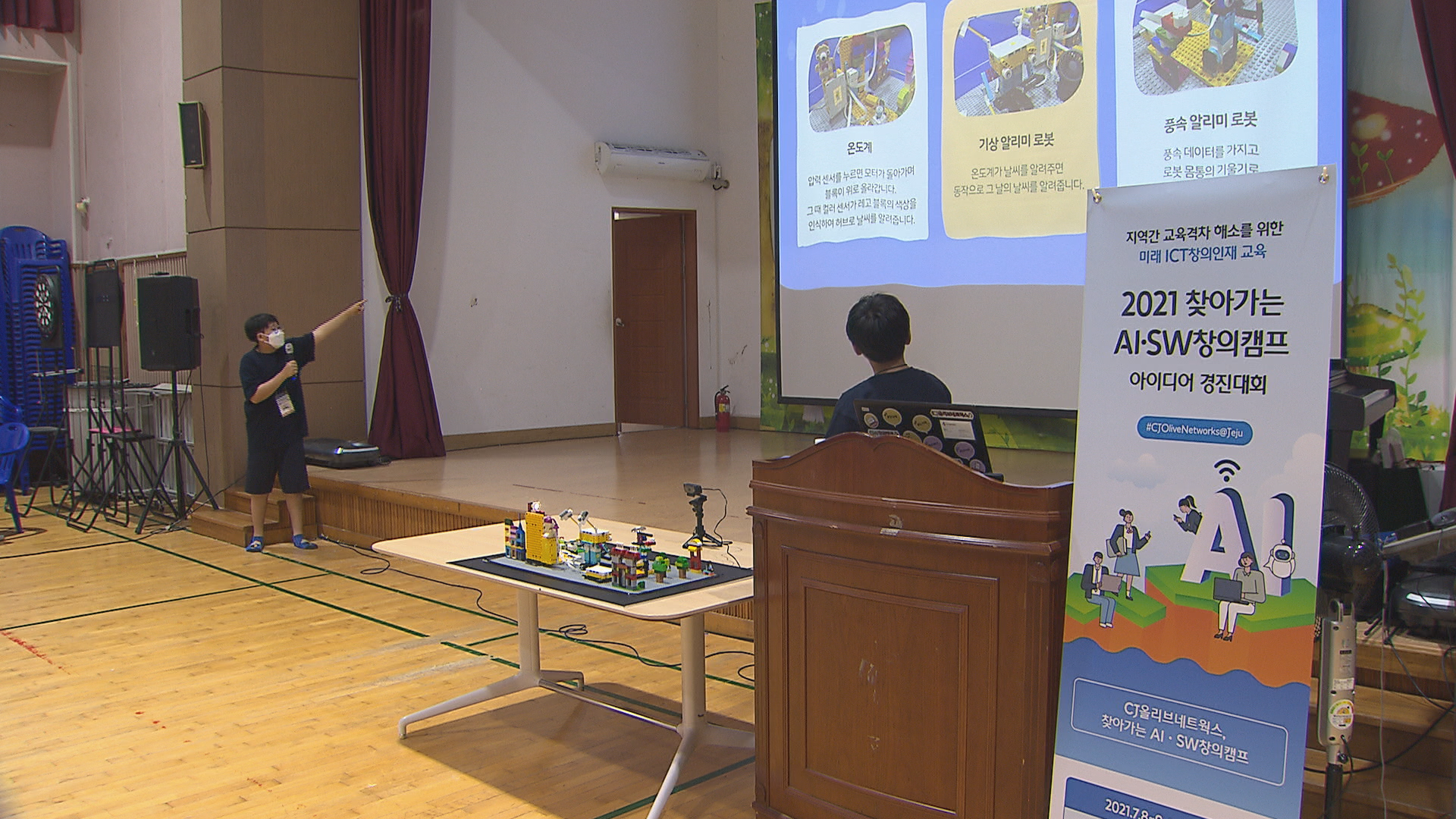 제주도내 중학생들을 대상으로 학교로 찾아가는 AI캠프가 진행됐습니다.