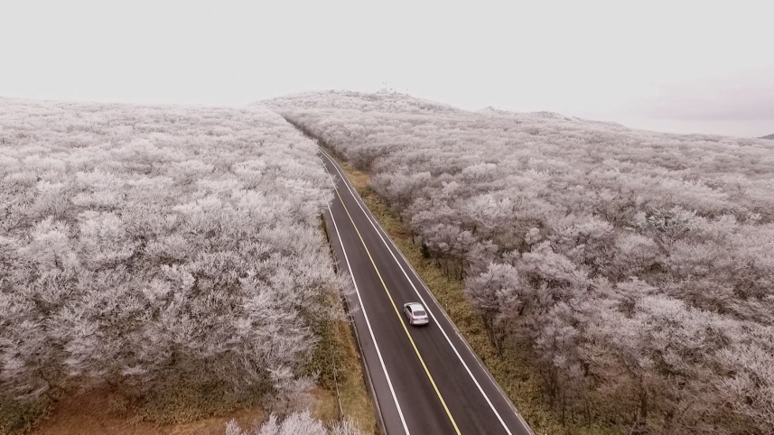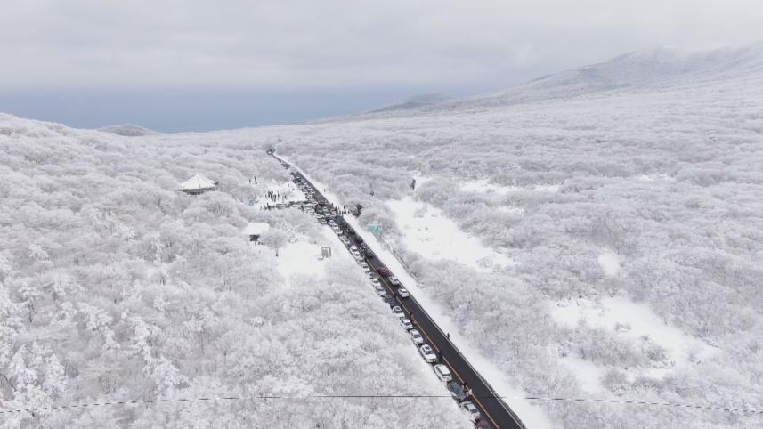 한라산 눈꽃 장관 사이를 가로지르는 '1100도로'