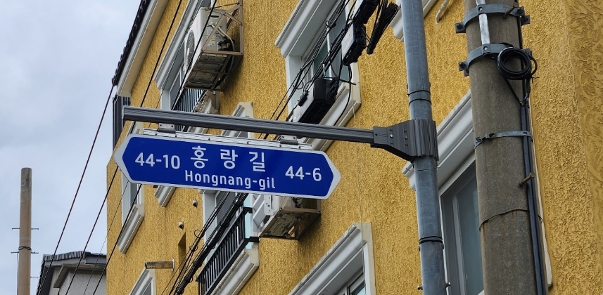 오래전 주택가가 만들어졌고, 주택가 이면도로에 홍랑길이란 신주소가 부여된 겁니다.