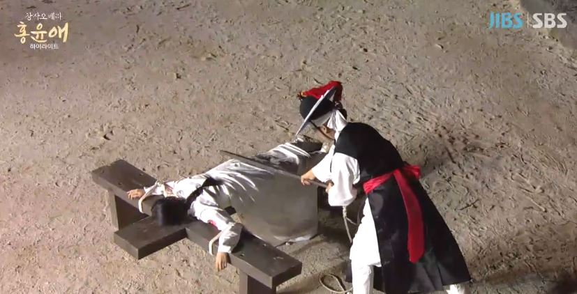 홍윤애가 끝까지 조정철의 무고함을 주장하자, 유배온 죄인의 집에 출입했다는 명목으로 곤장형을 가해 초주검에 이르게 했습니다.