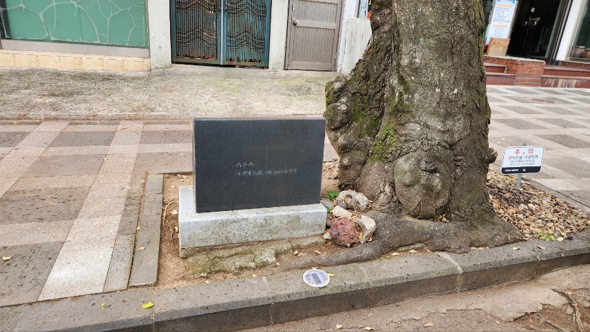 홍윤애의 무덤이 있던 곳이라는 묘지석이 벚나무 옆에 초라하게 만들어져 있을 뿐입니다.