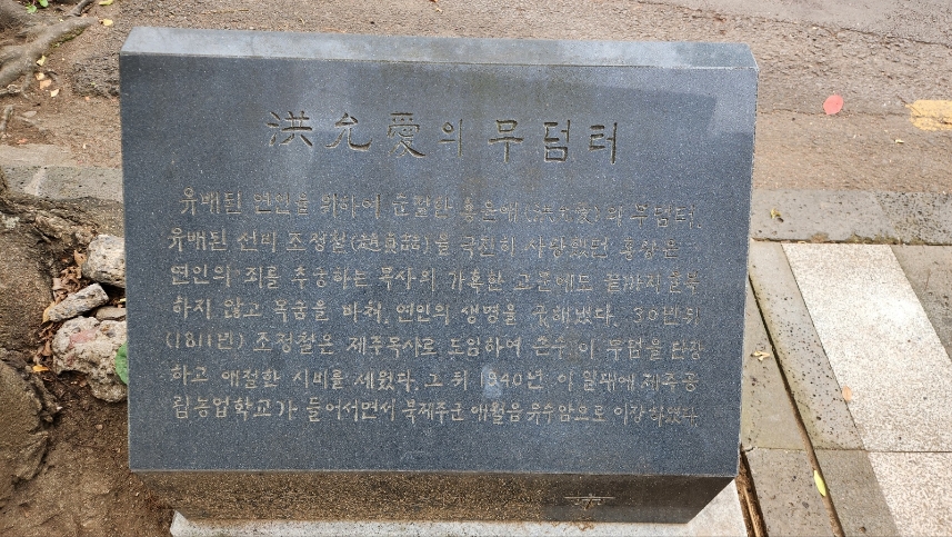 홍윤애의 무덤은 세월이 지나 1940년 제주농업고등학교가 생기면서 자리를 내줘야했고, 제주시 애월읍 유수암리로 옮겨졌습니다.