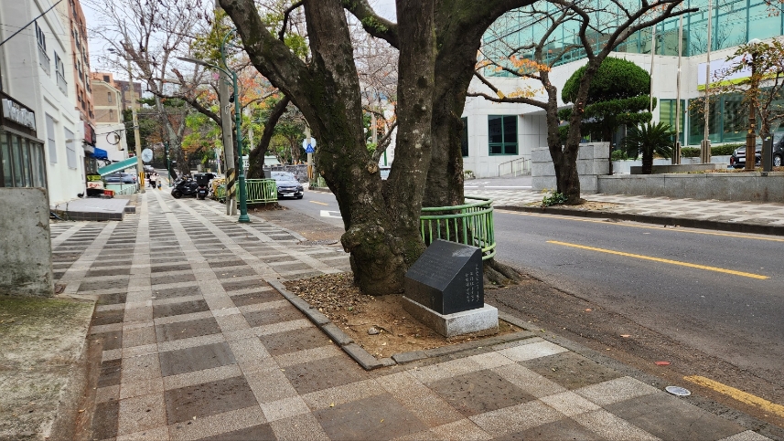 홍윤애의 무덤이 있었던 제주시 전농로엔 수령 100년이 넘는 벚나무들이 지켜 서 있습니다.