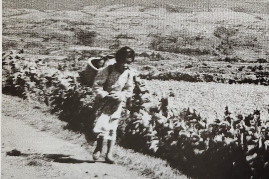 물허벅 짊어지고 집으로 향하는 여자 아이들 (제주 옛 모습, 제주시)