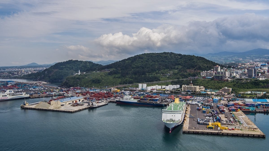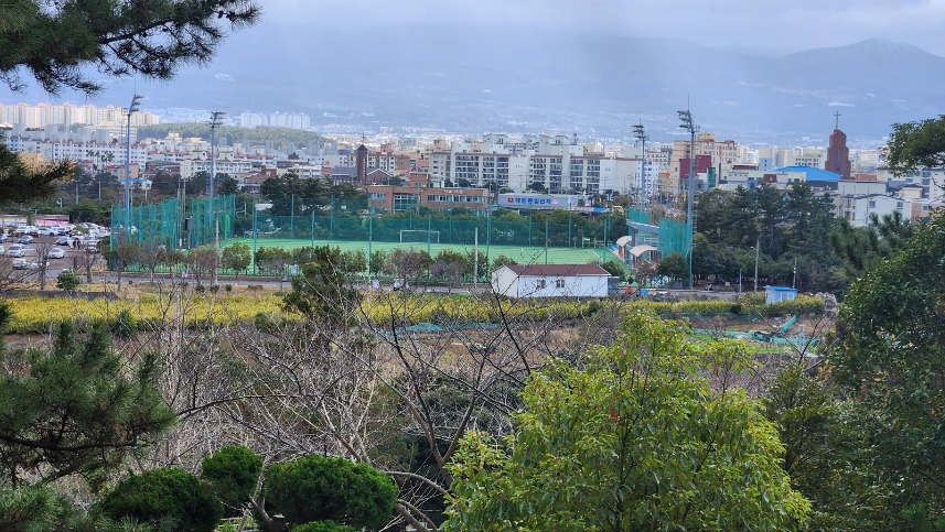 제주항 바로 뒤쪽으로 높이 143m의 오름인 사라봉이 솟아 있습니다.