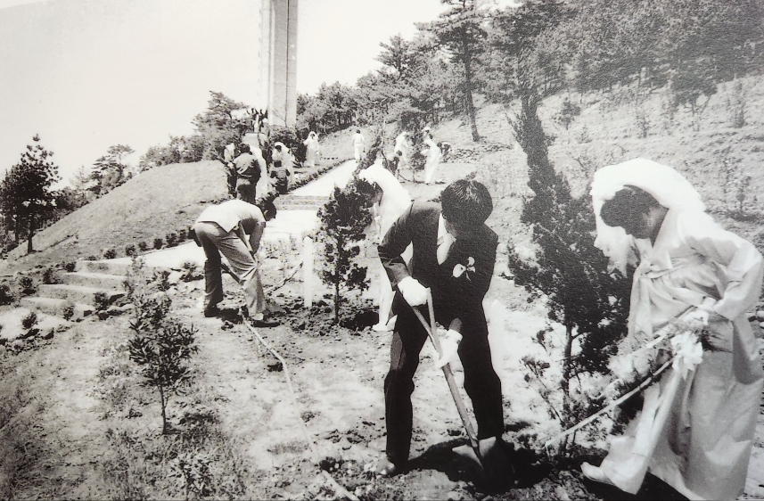 당시 충혼묘지 뒷편의 사라봉이 민둥산이라 나무를 심어 숲을 만들라는 윗선의 방침이 있었고, 신혼부부들이 사라봉에 나무를 심는 기념 이벤트가 마련됐던 겁니다.