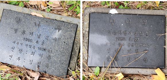 결혼 기념 식수를 한 후 설치했던 표지석