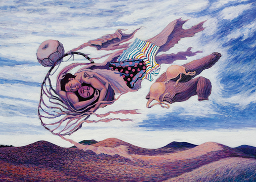 배경과 분리돼 보이는 얼굴 또는 사물로, 그 접점에 시선이 닿으며 관람객은 서사의 맥락을 벗어나 화폭 가득 넘쳐나는 온갖 ‘것’들과 소통하며 의미망을 넓혀볼수 있습니다.