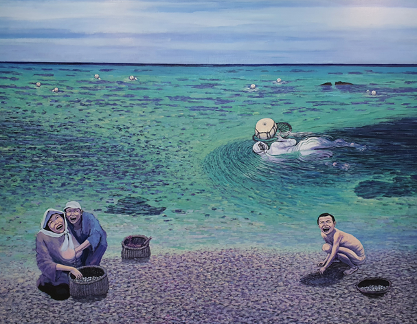 어쩌면 이토록 자연스러운 색감에, 호흡들인지. 함박웃음을 짓는 아이나, 해녀 '할망'의 구김없는 주름까지 거칠지만 따스한 공기에 섞여 화폭에 펼쳐집니다.