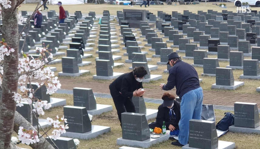 오늘 행방불명임 묘역에서 바람에 흩날리는 벚꽃잎은 유족들의 한이 서린 눈발이자 하염없이 떨어지는 눈물이었습니다.