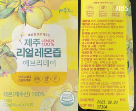 재검사 결과 '적합' 판정을 받은 제주산 레몬즙 제품