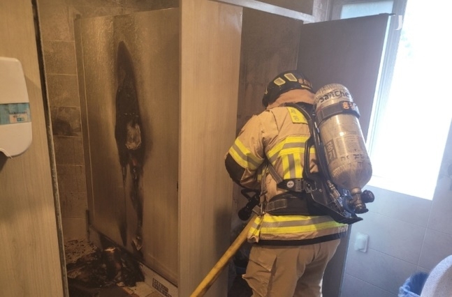 지난 5월 촉법소년이 홧김에 공중화장실에 불을 질러 소방대원이 출동한 모습
