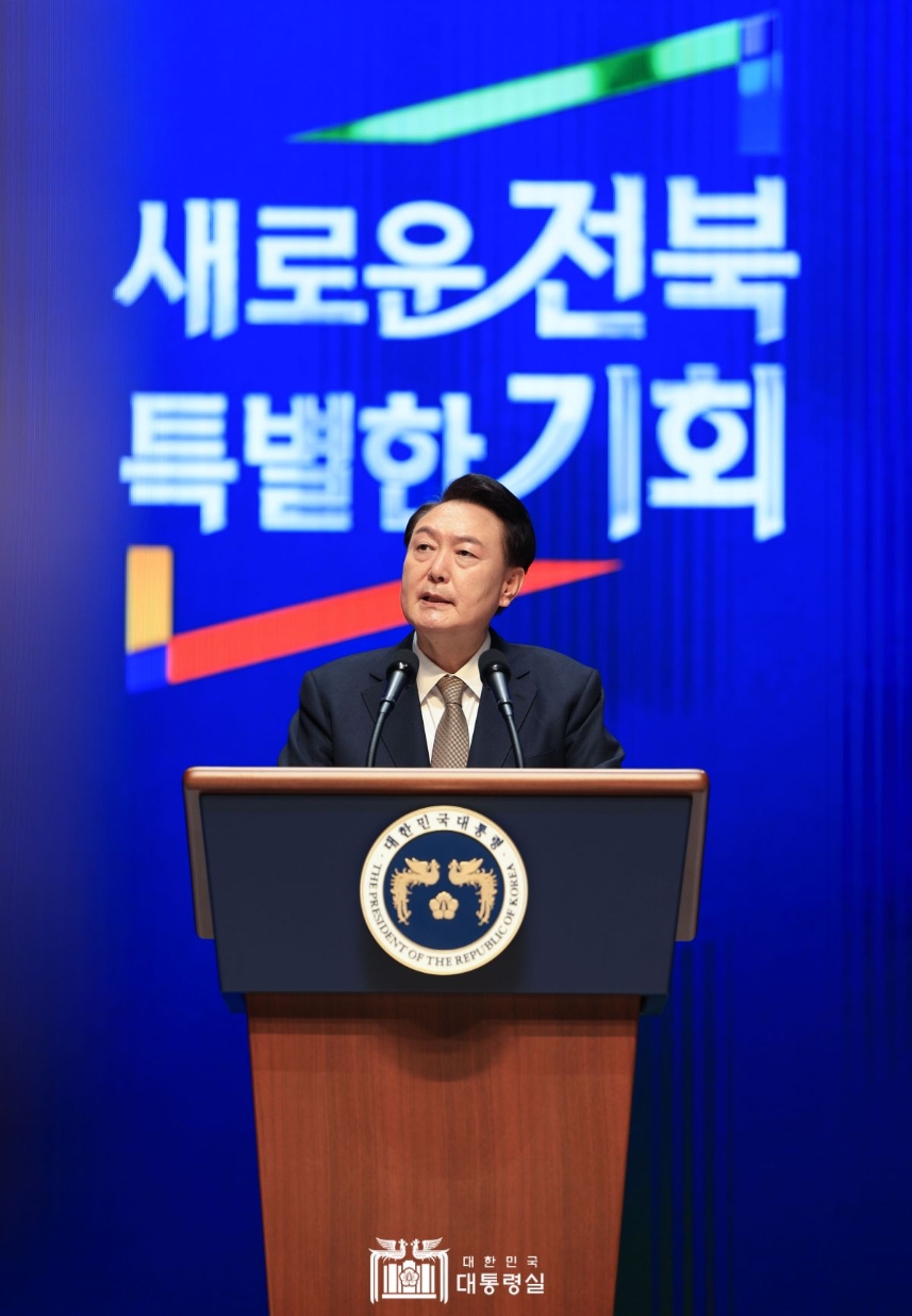 윤석열 대통령이 18일 전북 전주시 덕진구 한국소리문화의전당 모악당에서 열린 전북특별자치도 출범식에서 축사를 하고 있다. (대통령실)