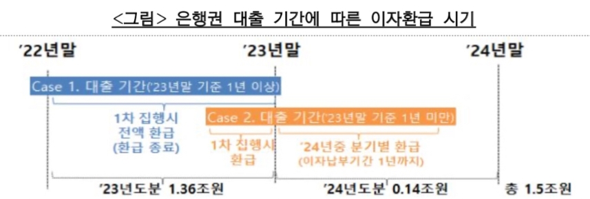 별도 신청 절차가 없고 은행이 이자 환급 대상 차주를 추려 환급을 진행합니다. 1일부터 7일 사이 대상자에게 문자 등 알림이 갈 예정입니다.