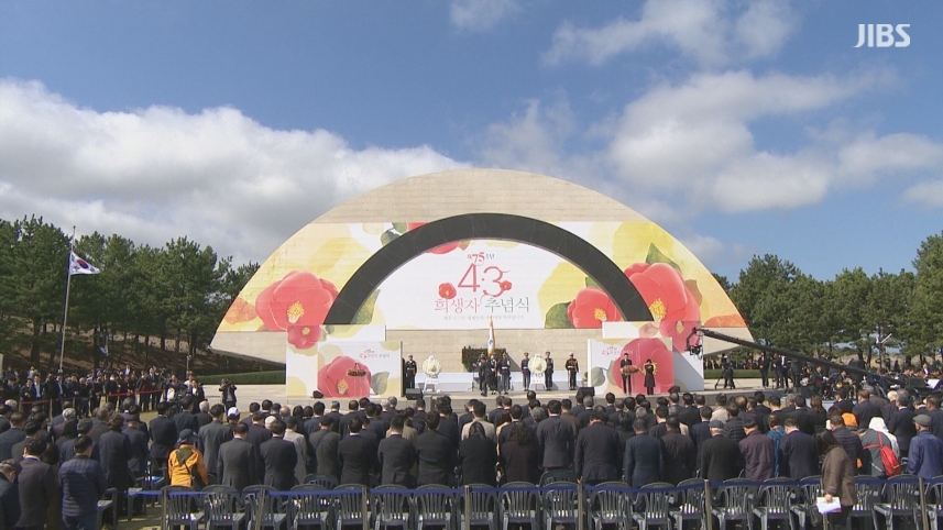 본 행사는 헌화, 분향, 유족 사연, 추모공연 등으로 구성됐으며, 전국에 생방송됩니다.