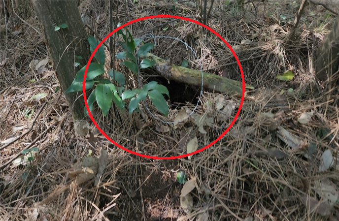 오소리 굴 입구에서 발견된 올무 (환경부 영산강유역환경청 제공)
