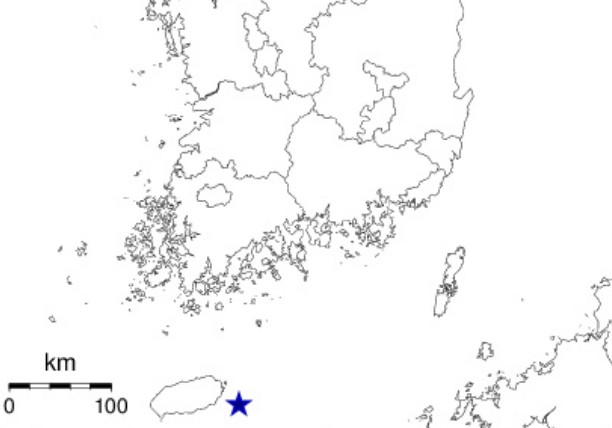 오늘(22일) 저녁 6시 47분께 제주 동쪽 51km 해역서 규모 2.0의 지진이 발생했다. 별표는 지진 발생 위치. (기상청 제공)