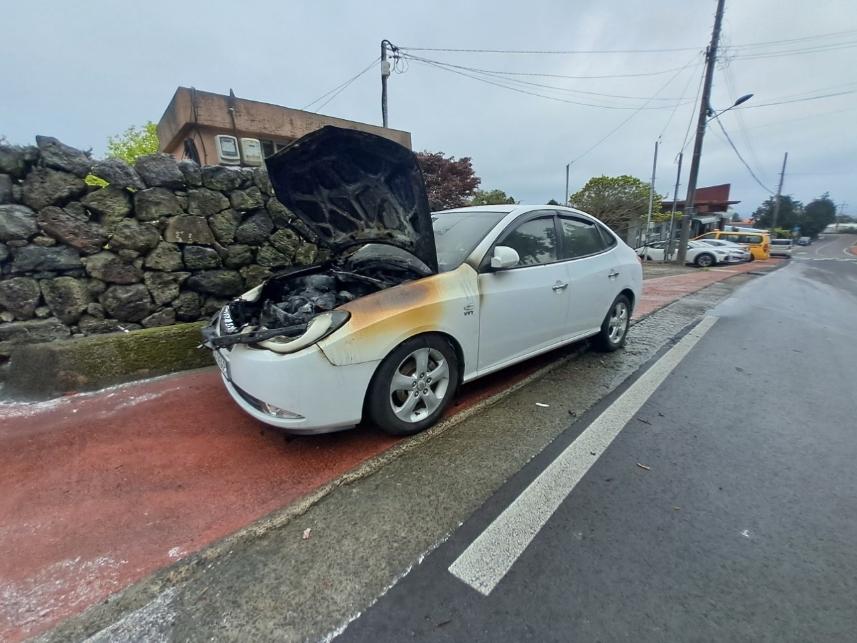제주소방안전본부에 따르면 어제(23) 오전 10시 반쯤 서귀포시 남원읍 한 도로에 정차돼 있던 승용차에서 연기가 나고 있다는 신고가 접수됐습니다.