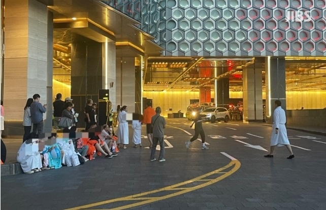 그제(9일) 제주드림타워 6층 사우나에서 난 불로 이용객들이 대피한 모습 (사진, 시청자)