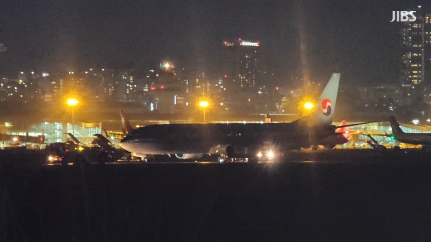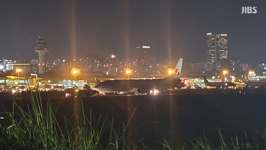 오늘(26일) 밤 8시 55분 김포행 대한항공 KE1336편 항공기가 제주국제공항 활주로에서 이륙 도중 고장으로 멈춰선 모습