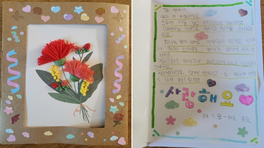 하율 양이 어머니한테 쓴 어버이날 카드 (사진, 한국장기조직기증원)