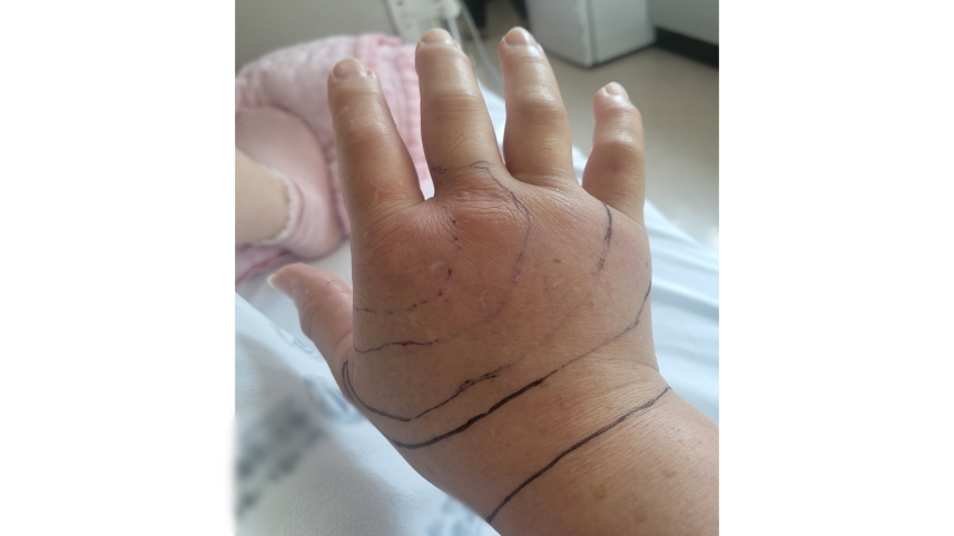 뱀에 물려 독이 퍼진 손 (사진, 시청자 제공)