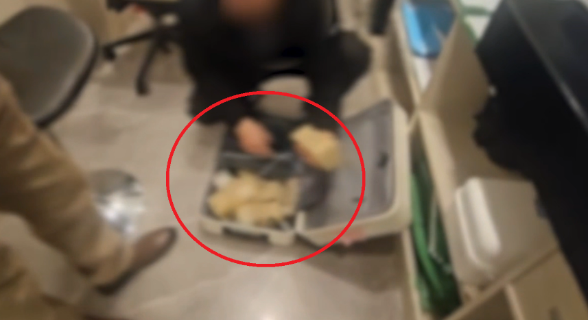어제(19일) 피의자가 다른 호텔에 숨겨 놓은 현금 일부인 1억 6,460만원을 경찰이 찾아 압수하는 모습. (제주경찰 제공)