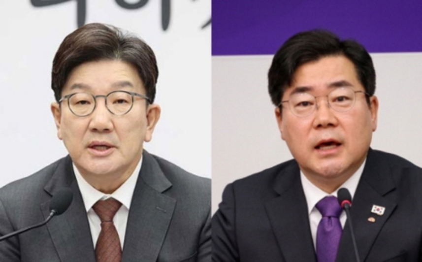 권성동 국민의힘 원내대표(왼쪽), 박찬대 더불어민주당 원내대표