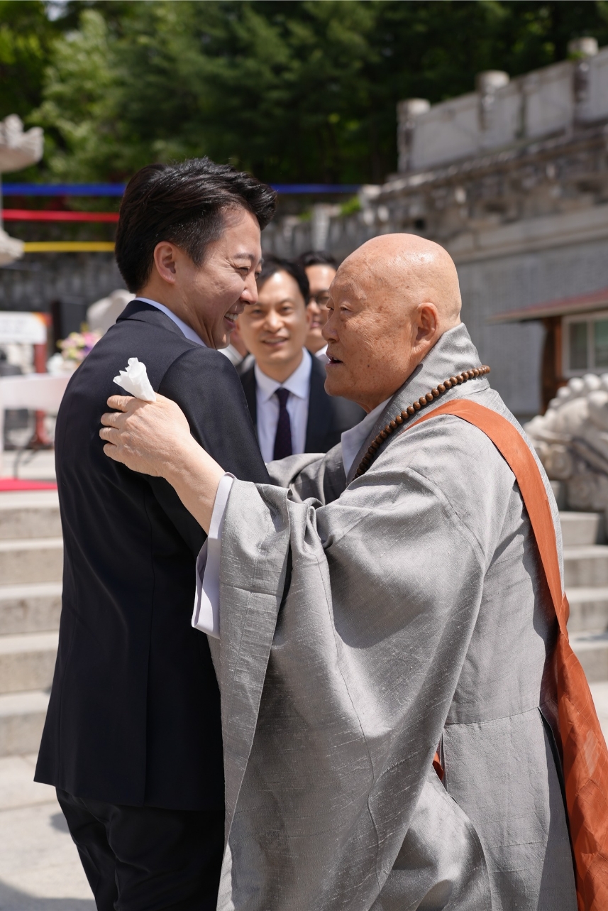 불기 2569년 부처님 오신 날을 맞아, 5일 이준석 개혁신당 대선 후보가 대구 동화사를 찾아 의현 방장스님을 예방했다. (본인 페이스북 캡처)