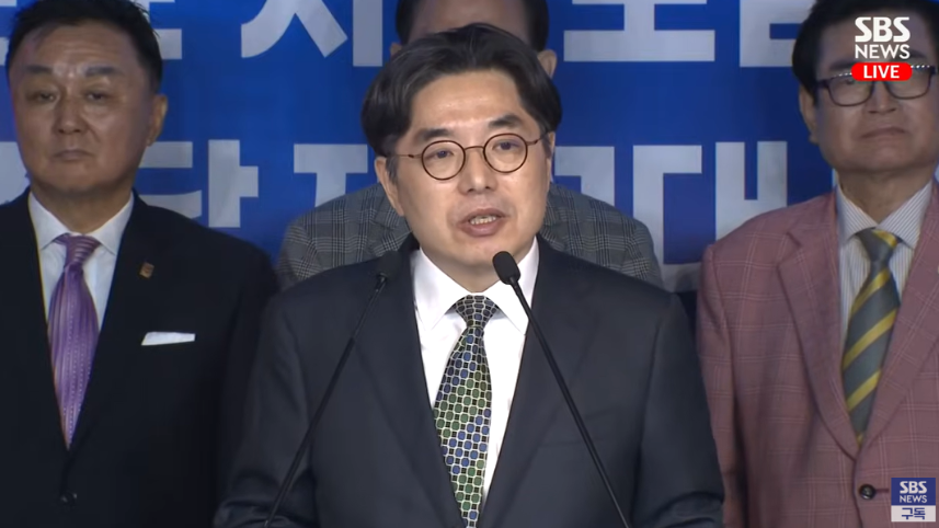홍준표 전 시장 지지모임은 오늘(13일) 이재명 민주당 대선후보에 대한 지지를 선언했다. 사진은 기자회견 모습. (SBS 보도화면 갈무리)