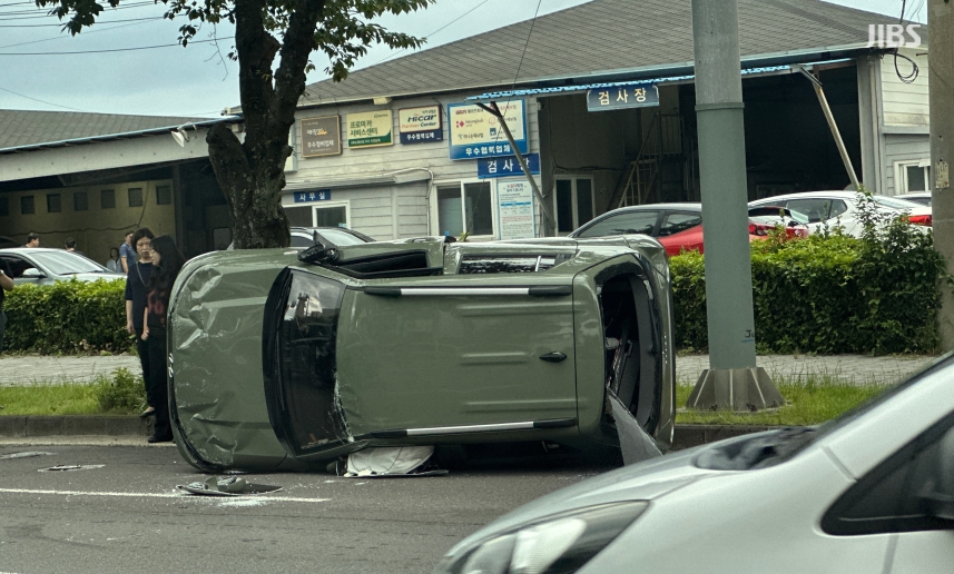 제주소방안전본부에 따르면 오늘(24일) 오후 3시 20분쯤 제주시 연동 한 도로에서 차량 3대가 연달아 부딪쳐 이 중 1대가 전도되는 사고가 발생했습니다.