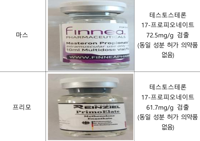 식약처는 압수된 스테로이드제제가 단백질의 생성을 촉진하는 합성 스테로이드(단백동화스테로이드, Anabolic Steroid)로, 투약 시 면역체계 파괴, 성기능 장애, 심장병, 간암 유발 등 심각한 부작용을 초래할 수 있어 의사의 처방 없이는 사용이 제한된 전문의약품이었다고 설명했습니다.