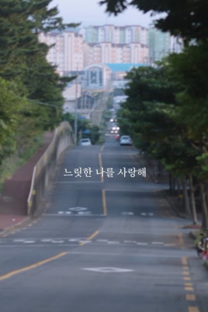 서귀포 위미 마을 골목 위로 “느릿한 나를 사랑해”라는 문장이 흐른다. (SNS 캡처)