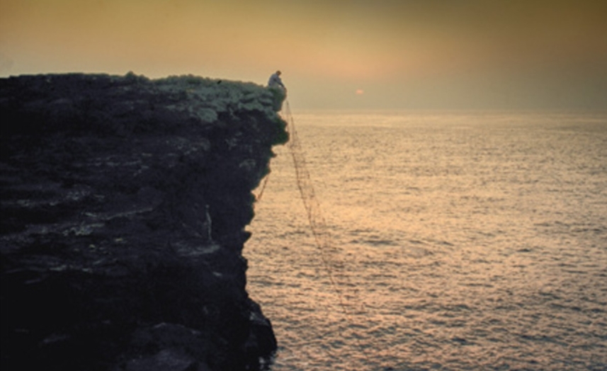 낚싯줄이 바람을 가르고, 발밑에서는 금속빛 파도가 부서집니다.