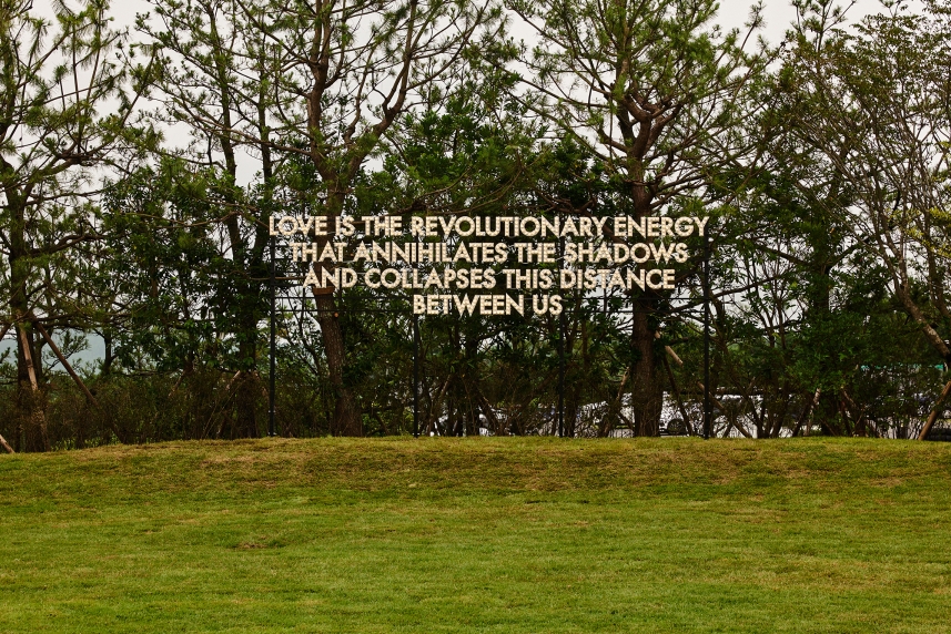 로버트 몽고메리(Robert Montgomery) 작가는 야외 공간에 사랑을 혁명적 에너지로 선언하는 네온 시를 설치하며 시적 개입을 시도합니다.