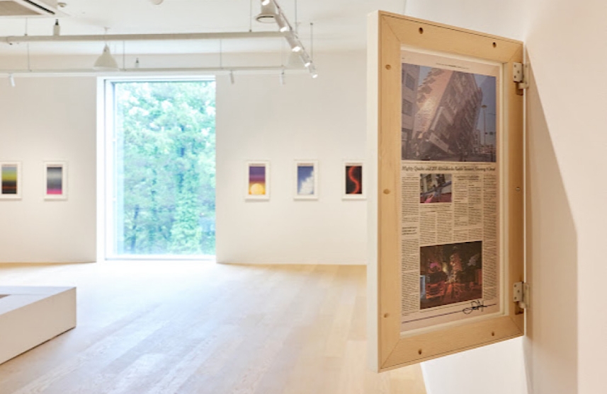 쇼 시부야(Sho Shibuya) 작가는 같은 날의 하늘과 뉴스 이미지를 병치해 평온과 혼돈의 동시성을 직관화합니다.