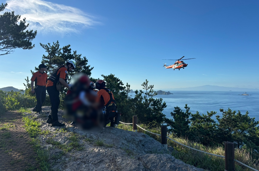 추자도에서 올레길을 걷던 50대가 발목을 다쳐 헬기로 의료기관에 이송됐습니다.