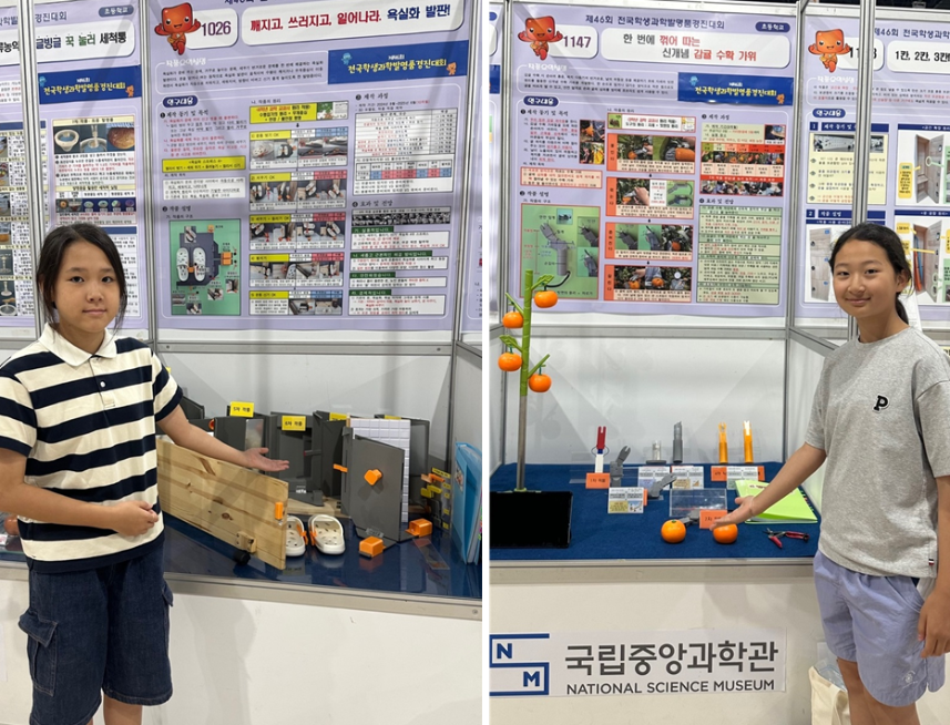제46회 전국학생과학발명품경진대회에서 최우수상을 차지한 진현서(왼쪽) 학생과 이하윤 학생 (제주도교육청 제공)
