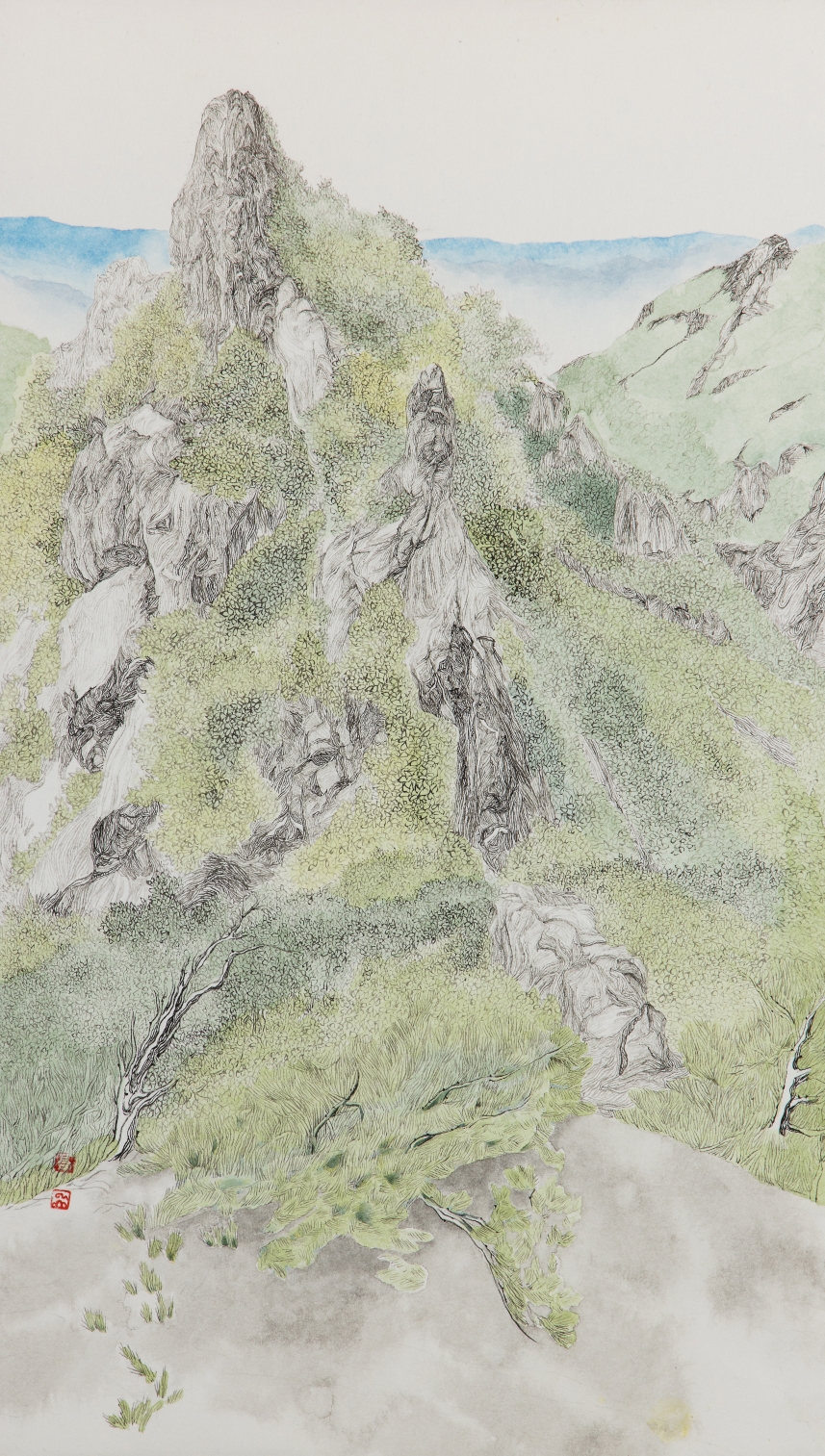 좌경신 작가의 문인화 ‘불꽃 사랑’은 절제 속에 길을 묻습니다. 욕망을 덜어내고 자연과 합일하려는 구도자의 태도가 화폭에 스며, 전시 전체를 마무리하는 사색의 결을 만듭니다.