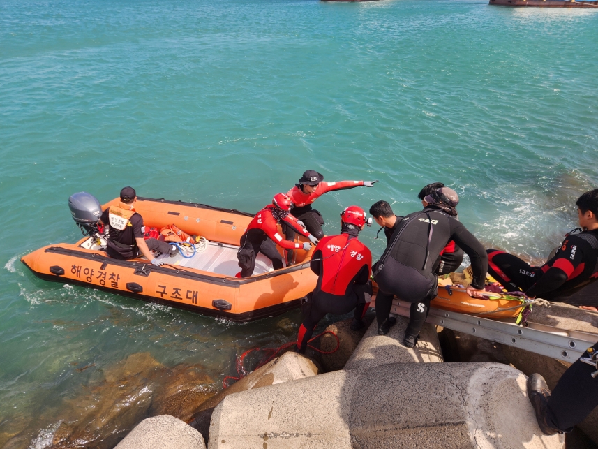 테트라포드 인명 추락 사고를 가정해 구조 보트와 동력 구조 보드를 활용한 인명 구조 훈련이 실시됐고, 구조 역량 강화를 위한 기관별 구조 기법 공유 등도 이뤄졌습니다.