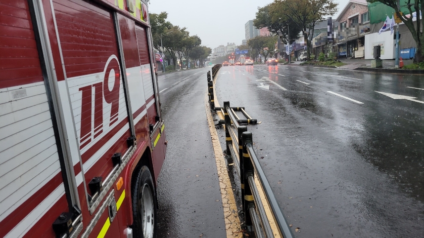 이어 오전 9시 40분과 10시 30분에는 이도이동 도로 중앙분리대가 잇따라 쓰러져 소방대가 긴급 조치에 나섰습니다.