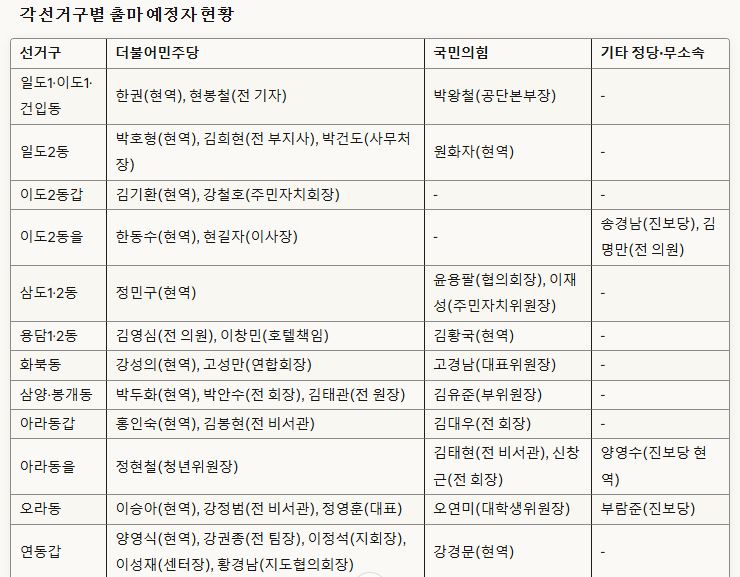 제주시 지역 선거구별 출마 예정자