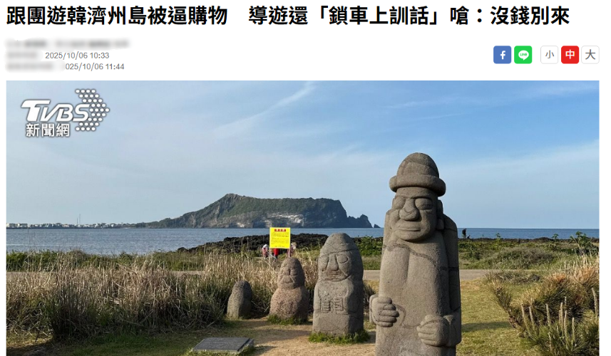 이어 대만 뉴스 채널 TVBS는 “제주 단체관광에서 가이드 강매 논란이 불거졌다”며, 현지 관광업계의 구조적 문제를 함께 짚었습니다.
