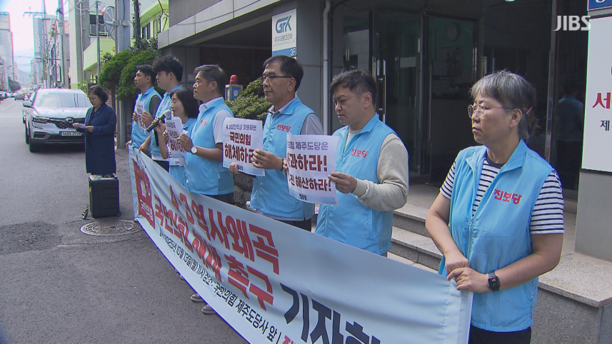 진보당 제주도당은 오늘(13일) 오전 국민의힘 제주도당 앞에서 기자회견을 열고 “국민의힘 해체”를 촉구했습니다.